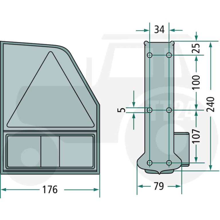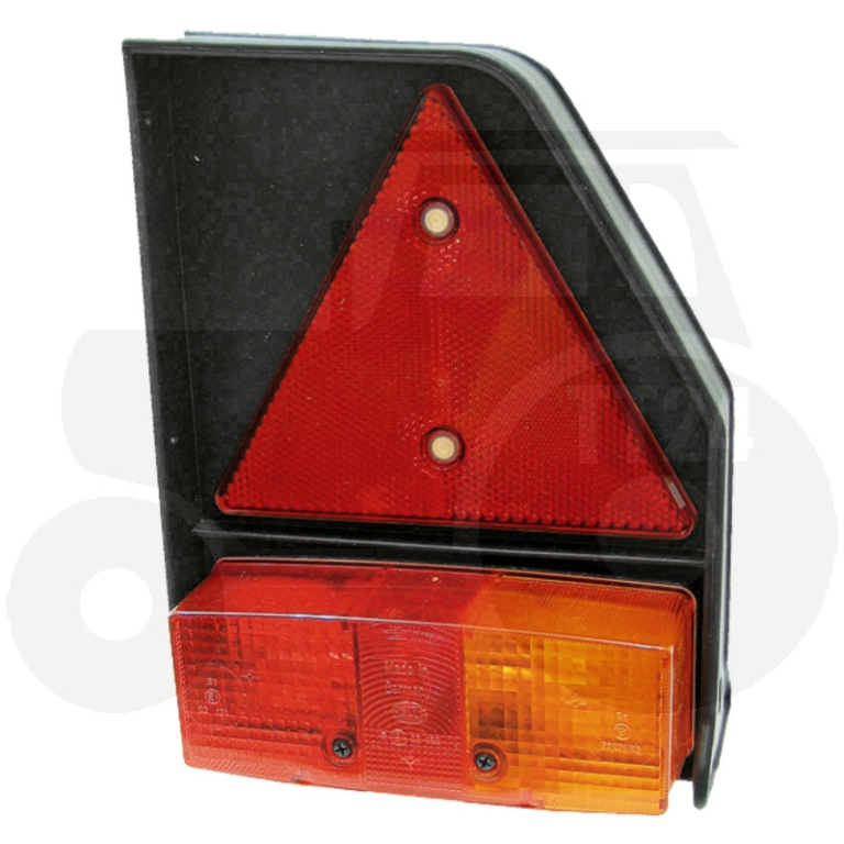 Kunststoffträger mit Schluss-, Brems- und Blinkleuchte inkl. 12V Leuchtmittel, Dreieckrückstrahler und Anschlussleitung mit Steckergehäuse 4-polig