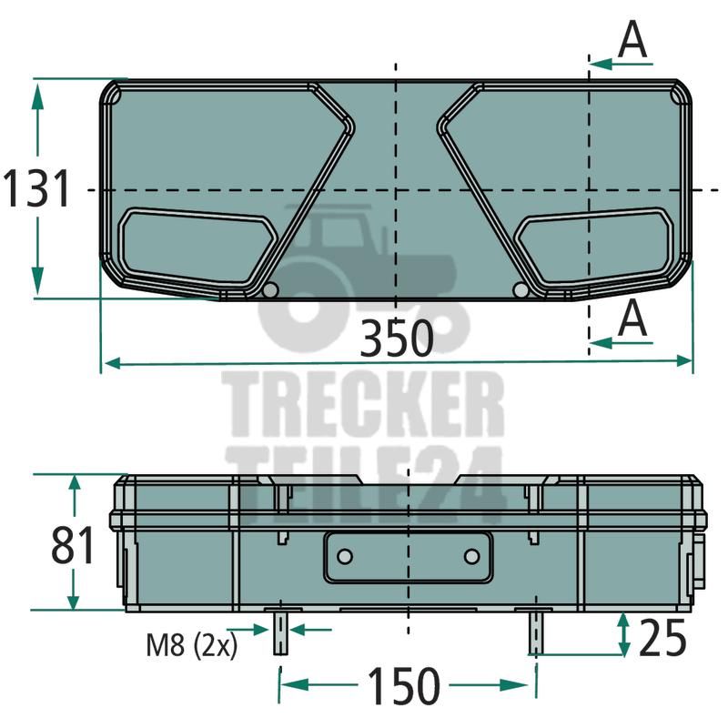 Abmessungen B x H x T (mm): 350 x 131 x 81