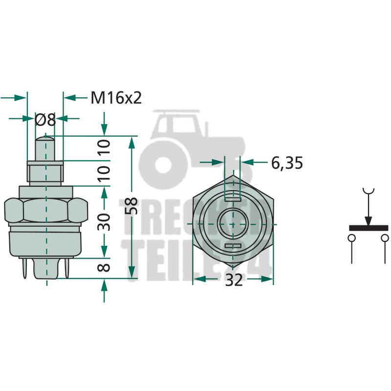 Ausführung: Schließer <br> Gewinde: M16 <br> 2 Flachsteckanschlüsse