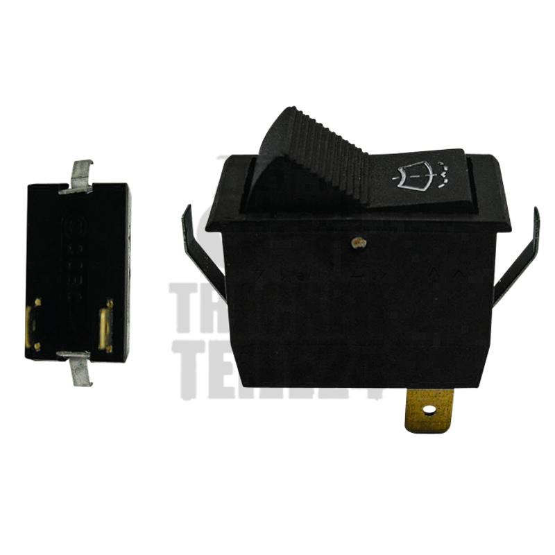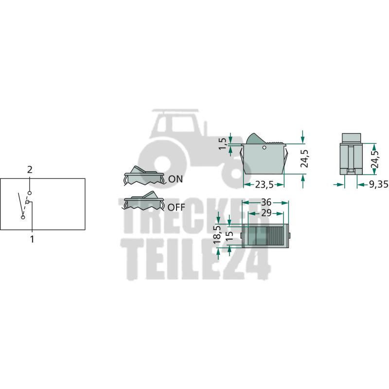 Ausführung: 12 V / 24 V <br> Ein- / Ausschalter <br> 2 Flachsteckanschlüsse <br> Einbaumaß: 15 mm breit, 29 mm lang und 34 mm hoch