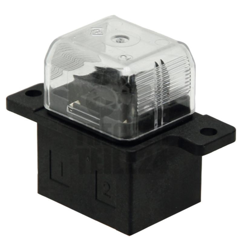 Ausführung: Aufbau ohne Sicherung, 8x Axial-Anschluss 6,3 mm unten, transparente Abdeckung <br> L 65 x B 26 x H 57 mm