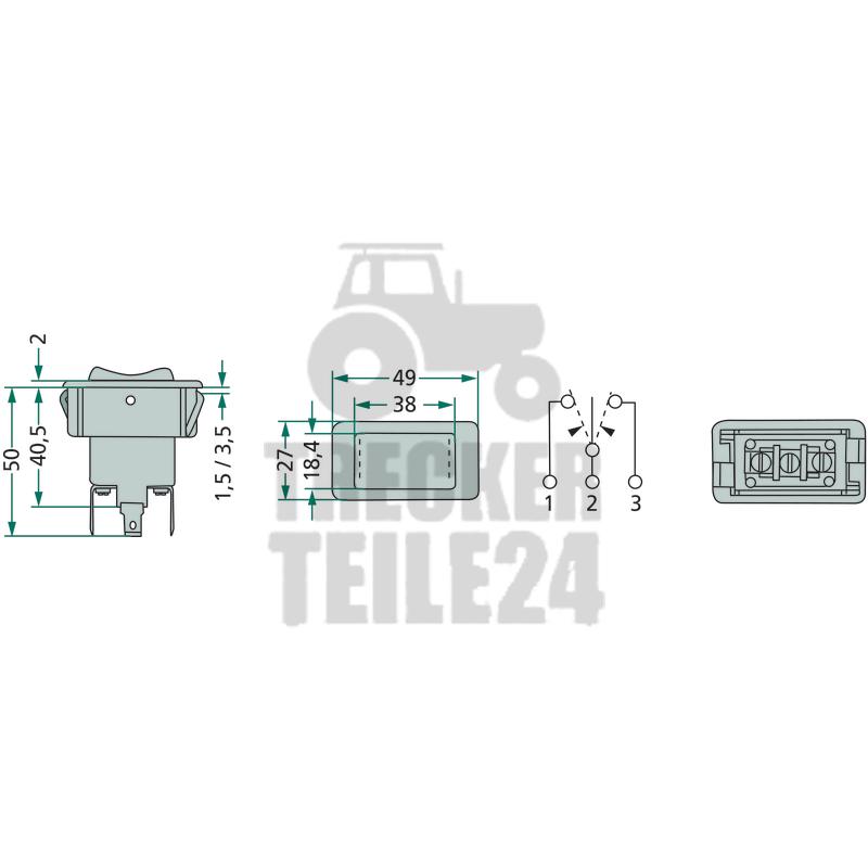 Ausführung: | 12 V / 24 V <br> Funktion: Ein - Aus - Ein <br> 3 Flachsteckanschlüsse <br> Belastbarkeit: 12 V = 10 A, <br> Einbaumaß: 15 mm breit, 29 mm lang und 34 mm hoch |