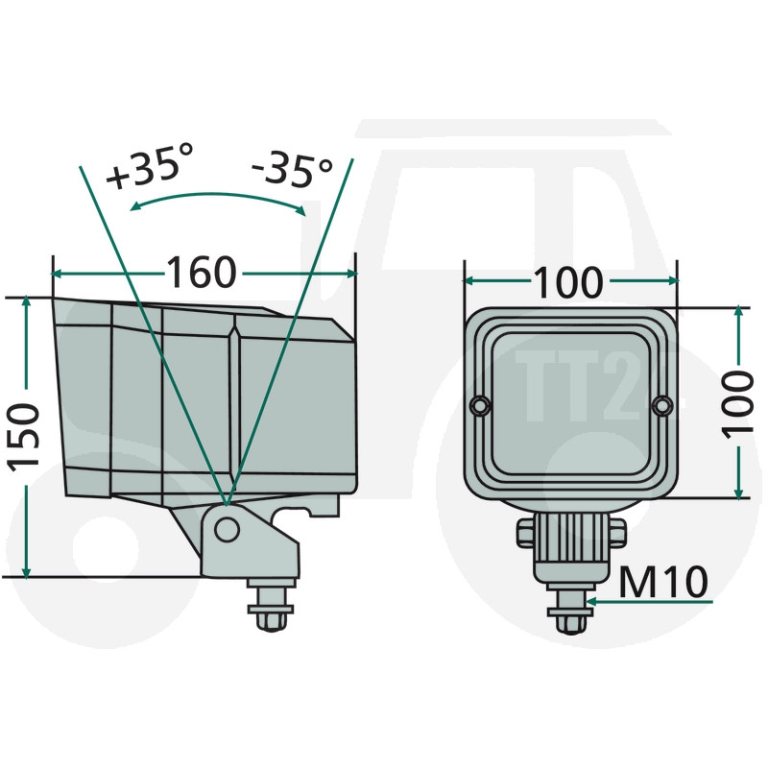 AusführungOptik für Nahfeldausleuchtung, Xenon 55W Leuchtmittel, Integriertes Vorschaltgerät, Anschlussspannung: 12/24 Voltschwarzes Kunststoffgehäuse, Befestigung aus nicht rostendem Stahl, Lichtaustritt: 100 x 90 mmpassend für55W / 85 V
