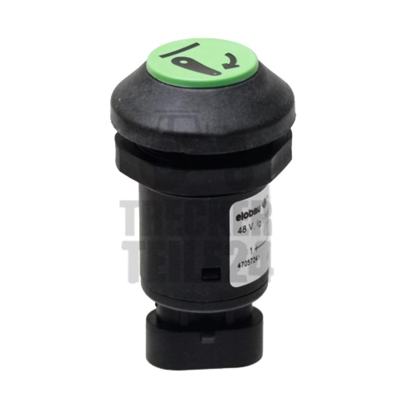 Ausführung: Tastfunktion <br> 48 Volt Schaltspannung <br> Knopf grün, <br>Schließer <br> Schaltknopfhub gesamt: 5 mm <br> Ø 30 mm, Steckanschluss (AMP Sukerseal Serie 1,5), <br> Staub und Spritwasserschutz