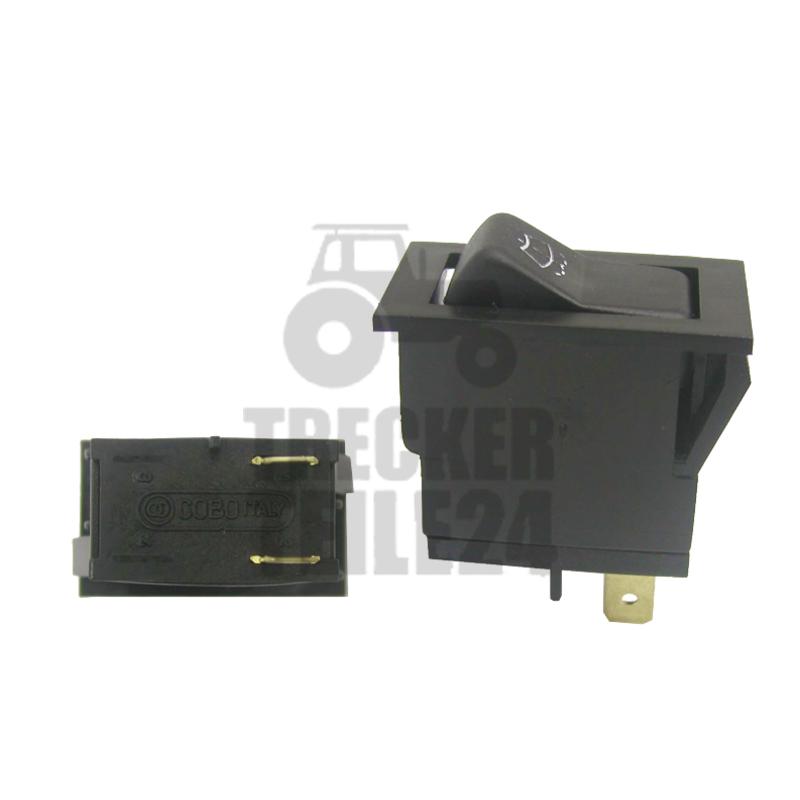 Ausführung: 12 V / 24 V <br> Tastschalter, 1 Schaltung, <br> 2 Flachsteckanschlüsse <br> Einbaumaß: 15 mm breit, 29 mm lang und 34 mm hoch