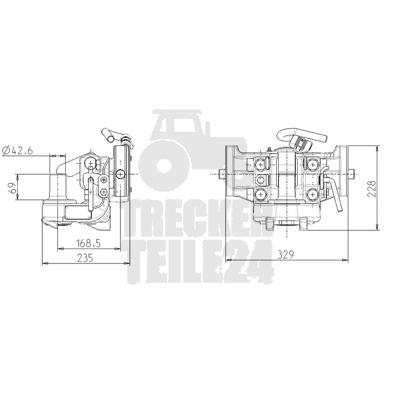 höhenverstellbar, Schiebebolzenverriegelung, Rahmenbreite 330 mm, pulverbeschichtet