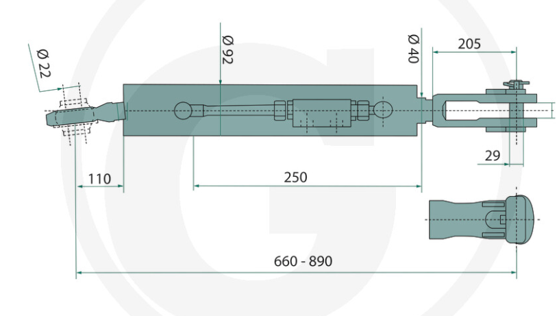 Mit der Bauart Gabelgelenk / Kugelgelenk gewährleistet sie optimale Beweglichkeit und eine zuverlässige Verbindung zwischen Traktor und Anbaugerät. Die verstellbare Länge von 660 bis 890 mm ermöglicht eine flexible Anpassung an verschiedene Einsatzbedingungen.