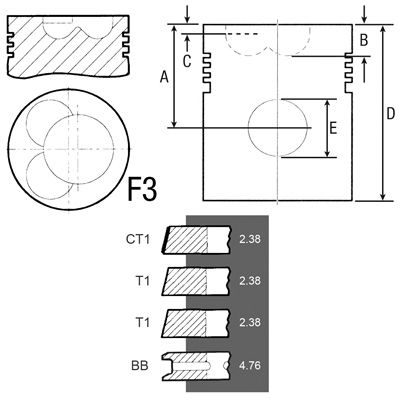 Kolben mit Kolbenringen für David Brown K949719Vergleichs-Nr.:K949719passend für Deutz/KHD: Serie: 1200 1200, 1210, 1212,Serie: 700 780,Serie: 800 880, 885,Serie: 90 1190, 1290, 1390,Serie: 900 995, 996,Serie: 94 1194, 1294, 1394Motortyp:AD3/55 - David BrownAD3/55A - David BrownAD4/55 - David Browntechnische Daten:G:19.90Typ: F3Bohrung: 100+0.51Ringe: 4 A (mm): 60.30 B (mm): 20.20 C (mm): 5.50 D (mm): 105.50E (mm): 31.75