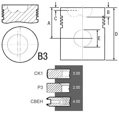 Kolben mit Kolbenringen für MWM Motorenpassend für FendtSerie: Farmer 300 309LS, 309LSA, 310LSA,Serie: Favorit 600 614LSA, 615LSAVergleichs-Nr:F285.200.310.231, F383.200.3100.30Motortyp:TD226-4.2 - MWMTD226-6.2 - MWMtechnische Daten:Typ: B3Bohrung: 105 mmRinge: 3Al-fin: AL-FINA (mm): 60.4B (mm): 20.4D (mm): 102.4 E (mm): 35