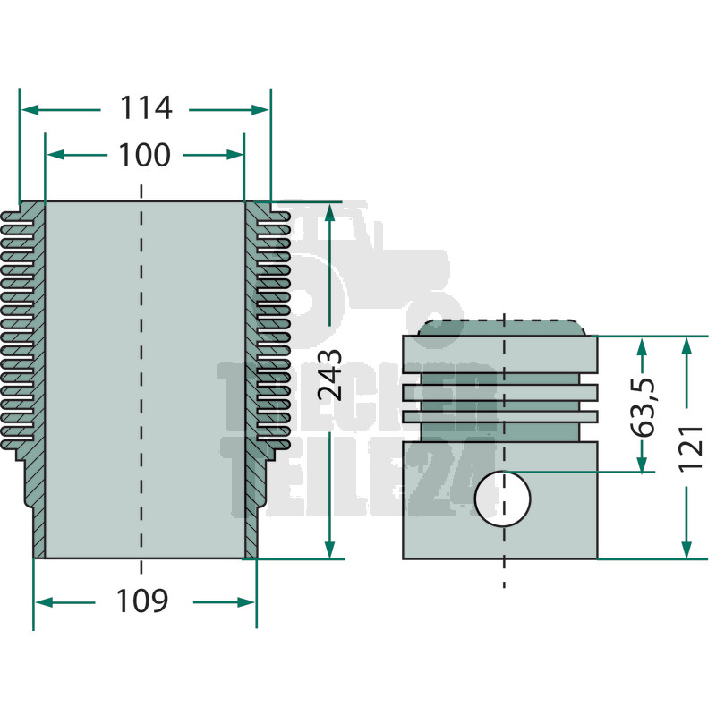 nur für EDL-Motoren 3 Ringe, Ø 100 mm, 35 x 85 mm Bolzen, Brennraum Ø 56,7 mm mehr